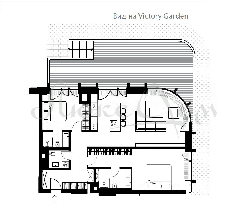 Планировка: кухня-гостиная, 2 мастер спальни с гардеробной и с\у, гостевой с\у.